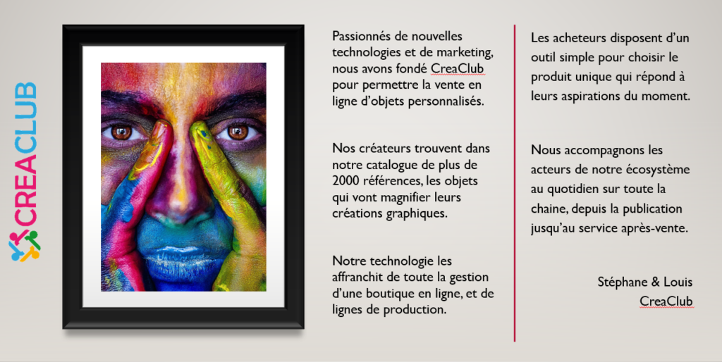 Avec CreaClub, proposez des supports de communication qualitatifs, produits en Ile-de-France (sérigraphie, impression ou broderie).